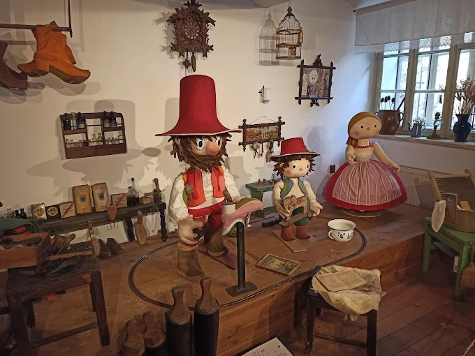 - Interaktivní prvky pro děti – mohou si vyzkoušet ševcovské nástroje nebo si hrát v pohádkové dílně
