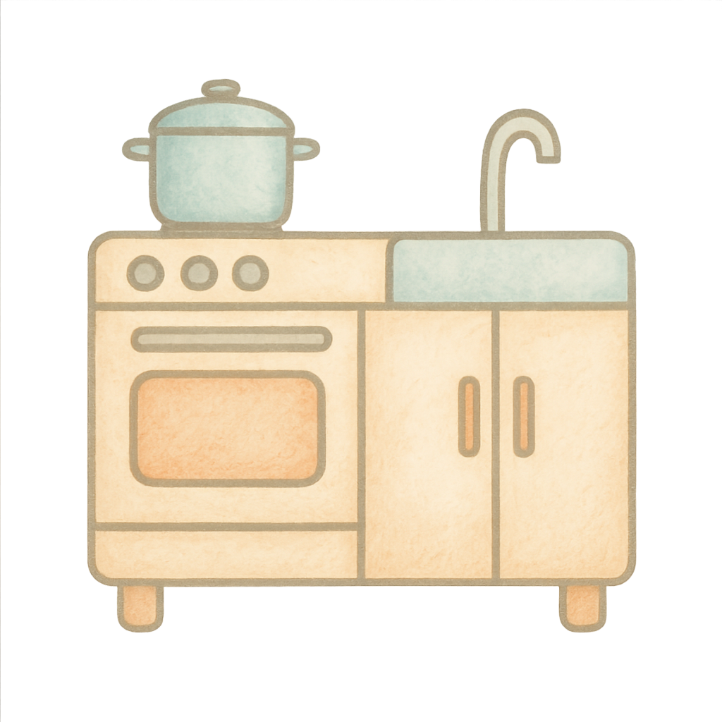 Naproti recepce je pro vás připravena útulná kuchyňka, kde najdete vše potřebné pro vaření i přípravu malého občerstvení.