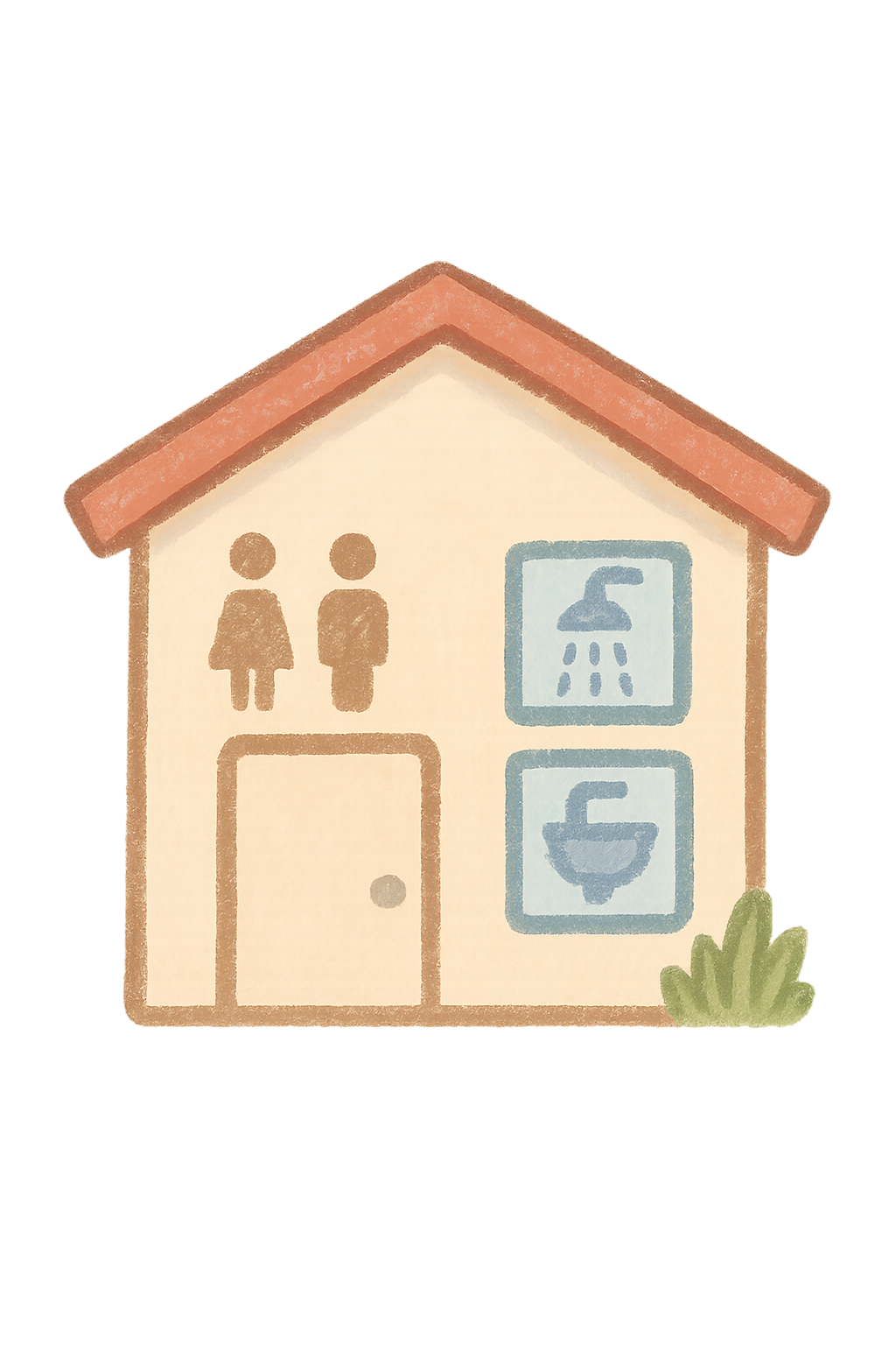 Pro drobné praní jsou vám k dispozici také venkovní umyvadla pro ruční praní prádla – ideální pro menší věci po koupání nebo výletech.
